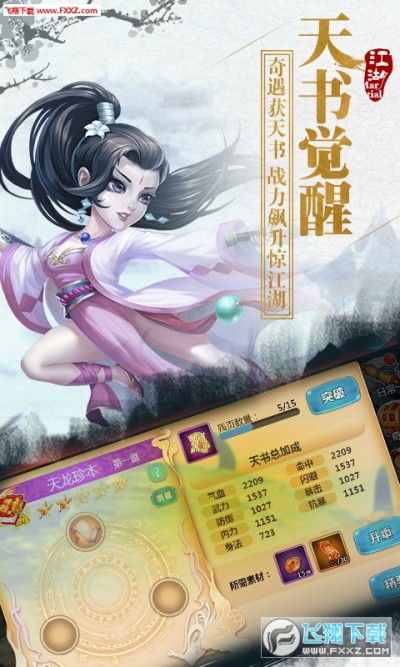 PVE玩法,重温单机经典,江湖游历有奇遇,可获天书残片,兑换天书,天书加成九大属性让你战力精进。
