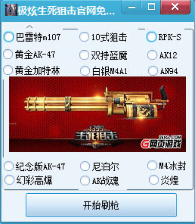 极炫生死狙击官网免费刷枪软件,可免费刷黄金枪、尼泊尔、幻彩高爆等稀有枪支,喜欢玩生死狙击的朋友可以下载使用。