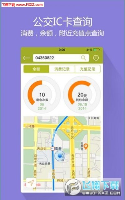 4.公交IC卡查询。拥有附近公交IC卡充值点查询,公交IC卡余额查询,公交IC卡消费记录查询等多种成都本地便民服务。