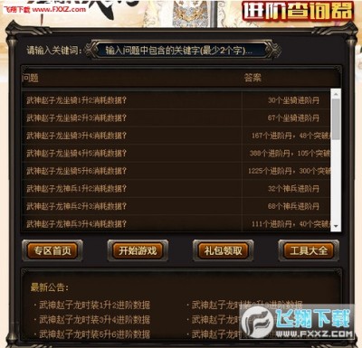 武神赵子龙进阶查询器,武神赵子龙游戏已经公测了一周时间了,很多玩家都在寻找着游戏内一些系统的进阶数据,今天大熊为大家做了一个武神赵子龙的进阶查询器,各系统的数据轻松查询,希望对大家有所帮助。