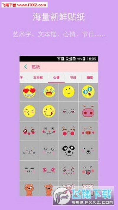 4.清新热门贴纸:艺术字、文本框、心情、节日、图章......