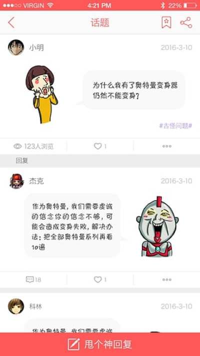 一款用表情贴纸表达态度,用文字探讨人生的趣味话题交流社区app。拥有百万兴趣话题,千万原创魔性贴纸,让交流变得更有趣。二次元患者重症监察室、鬼畜帝言论区、暴走情趣专场等更多兴趣社区,会带你发现更多意想不到的自己。