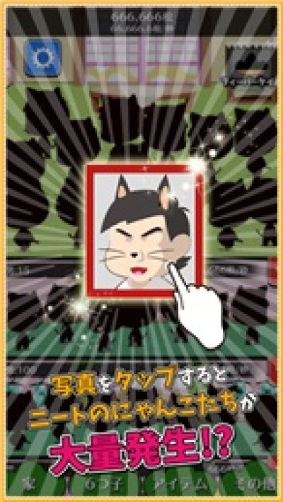 《阿松:6666兆的家里蹲们》是一款放置类游戏,在玩法方面类似于《刀剑喵舞》,通过点击画面上的照片,批量生产人气动画《阿松》里面的六胞胎!你放置的时间越久,阿松的“松值”会越高,然后阿松就无穷无尽的biubiubiu冒出来!
