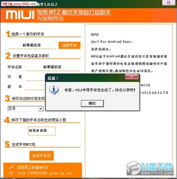 很多小米手机用户对于不能够讲常用字体直接转换成MIUI的MTZ格式字体非常无奈,miui字体打包小助手正好可以完美的解决米粉们的这个难题。