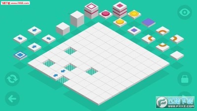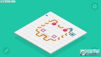 自定义迷宫汉化版是一款设计链锁机关的游戏。游戏分成两种模式,关卡和自设计。在全部60个关卡中,玩家要把一个或多个活蹦乱跳的蓝色小球送到目的地,即蓝白相间的方块所在的位置。为了让原本直线滚动的小球乖乖听话,玩家会用到转向、弹跳、传送门或者带按钮的升降台等机关。关卡模式的玩法主要是填空,也就是地图上有一些空白区域,玩家按照自己的理解将场外的机关填入即可。 游戏中的点睛之笔就是自定义模式,自定义模式更能体现出《自定义迷宫》的自由度与精髓。在任意时刻,玩家都能通过左下角的画笔图标进入到自设计模式,在这里玩家可以往10×10的空白地图上放置任意数量的全部类型机关,以及小球的起点和终点,然后看小球在自己设计的迷宫中能否顺利抵达目的地。