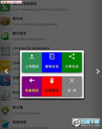 >>"全部上传":把列表中app图标信息上传到魅主题网站供其他人查阅(上传图标钱请确认设备应用的是默认主题或者列表中的图标图案是原版的).