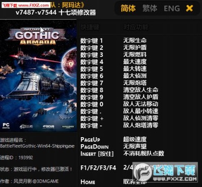 哥特舰队:阿玛达 十七项修改器v7487-v7544,是一款针对哥特舰队:阿玛达游戏的辅助工具,可以帮助玩家修改游戏数据,如生命值、速度、声望、护盾等等,实现无敌,带给玩家更酣畅淋漓的游戏体验;此修改器可支持游戏正式版v7544版本。