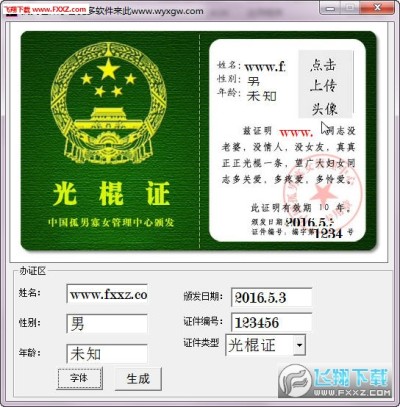 支持制作灌水证、潜水证、恋爱证、结婚证、超级帅哥证、超级美眉证、离婚证、等多种娱乐证件