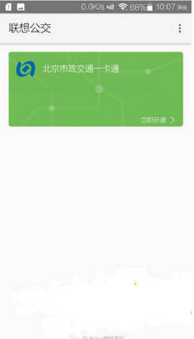 使用之后会出现一个“联想公交”的APP,打开之后可以看见北京市政交通一卡通的开卡界面。界面风格和其它全终端的开卡界面类似,目前仅仅显示支持北京市政交通一卡通。