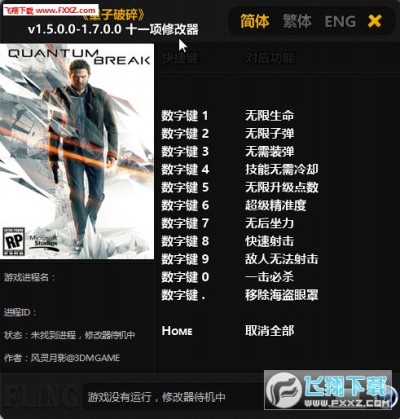量子破碎十一项修改器是一款针对量子破碎游戏发辅助修改器;可以帮助玩家修改游戏数据,实现角色无敌,带给玩家更畅快的游戏体验,可支持无限子弹、无限生命、一击必杀、无需装弹等共十一项功能,需要的朋友快来下载体验一下吧!