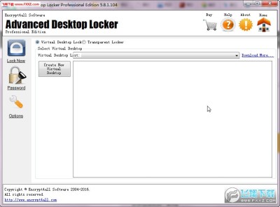 Advanced Desktop Locker Pro是一款易于使用的桌面保护软件,只需鼠标轻轻一击您就能很好地保护您的电脑桌面,任何人都无法再访问您的桌面及重要文件。安装激活后会弹窗告知您设置新的保护密码,设置好以后进入软件主界面,点击“Lock Now”,桌面立刻进入锁定状态,在此之前您可以选择锁定状态:虚拟桌面锁定(自定义桌面背景)或者透明锁定(当前界面直接锁定),唤醒可以自行设置,可选择单击唤醒或者双击唤醒。Advanced Desktop Locker Pro提供了多种虚拟桌面背景,你可以从中选择自己喜欢的设置,可以自行下载或者从本地选择自己喜欢的图片作为桌面,也可以选择使用透明锁定方式。所定之后,你可以对任务栏进行操作,但桌面不会有显示。