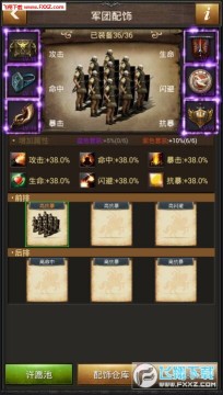 配饰可以吞噬其它无用配饰和配饰经验卡进行升级,配饰升级可以大幅度提升兵种属性,玩家可以查看当前配饰对各个兵种的属性加成。