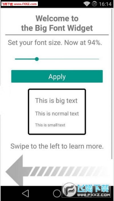 放大字体Big Font Widget这是一款可以改变系统及应用的字体大小,突破系统限制将字体再次放到100%,非常适合一些老年人朋友使用!