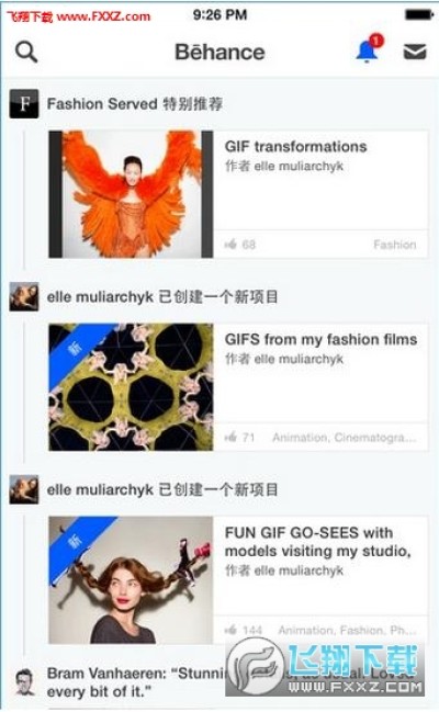 2、浏览所关注创意人才的最新活动和新作品;