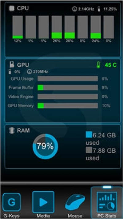 在移动设备上体验 PC 游戏和查看重要系统数据Logitech Arx Control™ 应用程序与 Logitech 游戏软件连接,为您提供了游戏信息显示、重要系统数据查看以及 PC 远程控制等独特功能,使您可以在移动设备上享受 PC 游戏的乐趣。