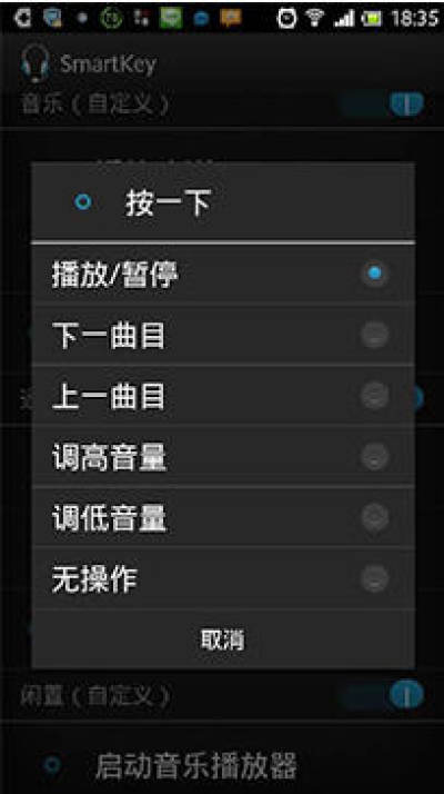 此应用程序用于标准的 Android 音乐播放器,但也针对 Walkman 播放器和各种其他音乐播放器进行了测试。如果应用程序不能正常工作,请尝试在音乐播放器中激活或者停用其本身的耳机控制功能,否则可能与此应用程序发生冲突。