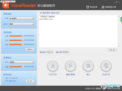 灵云朗读软件VoiceReader是一款文字转语音工具,可以帮助用户将文本文字转换为语音文件,解放双眼,文件小说可以用听的;软件支持自定义选择语言、男声女声,此外,还可以设置背景音乐,对语音文件进行合成和导出操作,功能强大,需要的朋友快来下载试试吧!
