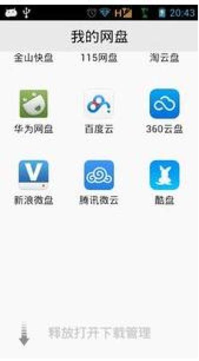 本着“一个就够”的原则,目前支持的网盘有:金山快盘,115网盘,淘云盘,华为网盘,百度云,360云盘、新浪微盘、腾讯微云,酷盘等。