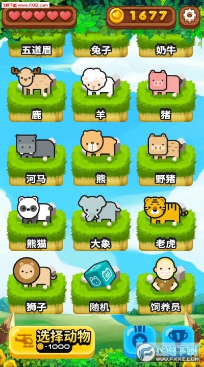 逃离非洲动物园 Africa Escape from zoo 中控制小动物到处跑,躲避动物园工作人员的追捕,每种动物身体素质不一样,只能看抽扭蛋的运气了,默认有五颗心的体力,如果跑得够远,可以吃到血瓶一次补满。