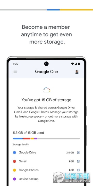 • 自动备份您的手机。系统会将您的所有照片、联系人、消息以及更多内容安全备份在云端。这样即使您的手机坏了、丢了或有了新手机,也能将所有内容恢复到新 Android 设备上。