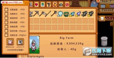 星露谷物语番茄SV内置修改器是一款针对《星露谷物语》游戏的内部修改器,将其复制到游戏目录替换进入游戏即可修改有序数据,让游戏更简单畅快;此插件采用特征码技术+D3DHOOK+刚刚完成的自绘D3DUI系统放到了游戏界面内,窗口是可以拖动的,跟游戏融合到了一起。有兴趣的朋友快来下载吧!