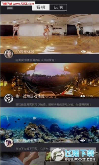 2.玩吧(在线社交功能),关注全景视频达人,参与讨论互动。