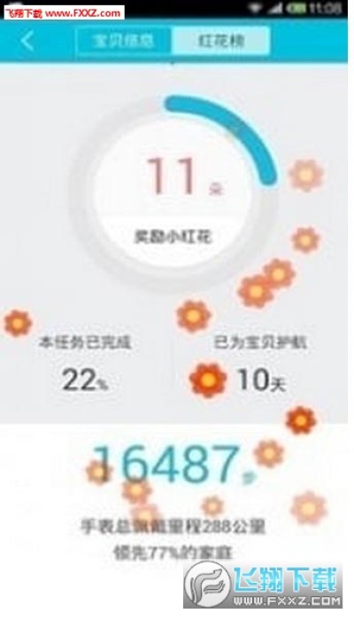 家长可以通过手机客户端向手表奖励小红花,小红花的数量将累计记录,显示在手表表盘。