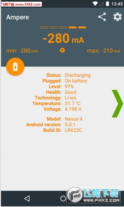 充电评测 Ampere可以用来检测下你的手机电池健康状况,如果你的手机电池已经用了很久了,不妨可以用这个来检测下,喜欢就来下载吧!