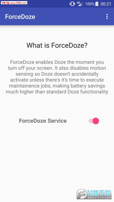 强制打盹ForceDoze是一款可以在手机锁屏之后不接受任何后台消息提示的手机管理工具。有了它之后手机锁屏就相当于是关机了。