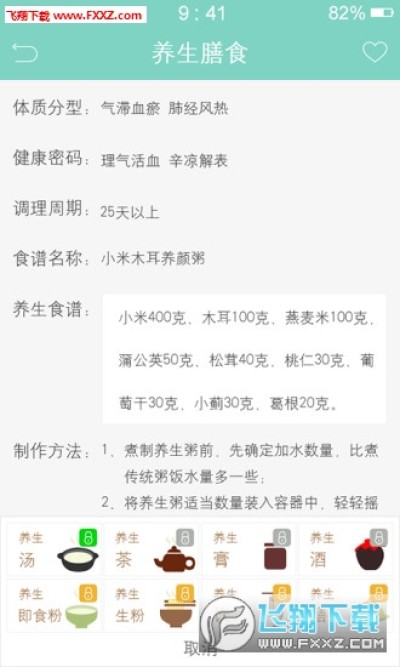 膳食医生软件是以中医药理论及中华中医药学会发布的《中医体质分类与判定》为基础,依据《中医内科学》,采用国家标准《中医临床诊疗术语》,对人体进行体质分型,给予用户专属的健康密码,并提供九类养生膳食配方(粥、酒、膳、汤、饮、生粉、茶、即食粉、膏),以及为用户及家人建立健康养生档案。