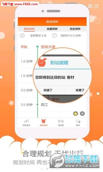 3.根据开启规划好的线路提前设定到站地铁闹铃,到站前及时以震动+铃声的方式提醒您,并根据需要可以自定义自己喜欢的闹铃。