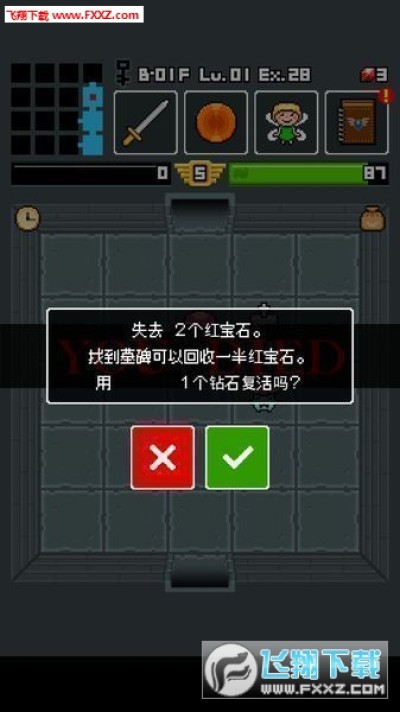 最多打到40宝石,死亡剩下二十,墓碑在第三层某处,找到可以回收10,如果没有找到墓碑,下一次继续打折,看起来好像很容易,别忽略了体力值和饥饿,过图-4饱腹,行动-2,食物爆率过低,怪物还有机关会让你损血,尤其每层最后一图的机关简直防不胜防 这是个考验运气多于考验智商的游戏,选择卸载,虽然挺好玩的。