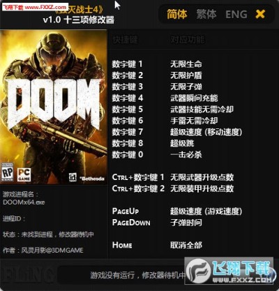 毁灭战士4十三项修改器是一款适用于游戏《毁灭战士4》的辅助修改器,可以帮助玩家通过快捷键快速获取辅助功能,如无限互盾、一击必杀、超级跳等等,享受游戏角色无敌的畅快,有兴趣的朋友快来下载试试吧!