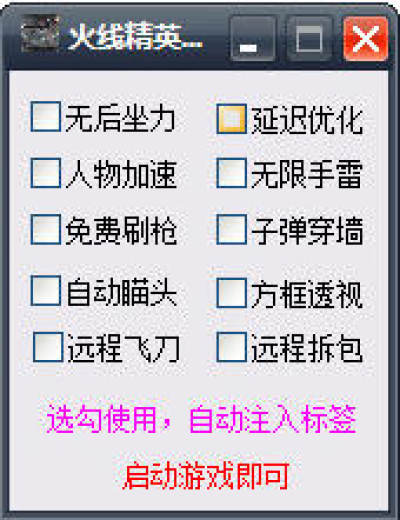 火线精英老九方框透视辅助是一款针对游戏火线精英的辅助修改器,可以帮助玩家修改游戏数据,轻松实现自瞄爆头、人物加速、飞天遁地等等功能,游戏更加轻松,需要的朋友快来下载试试吧!