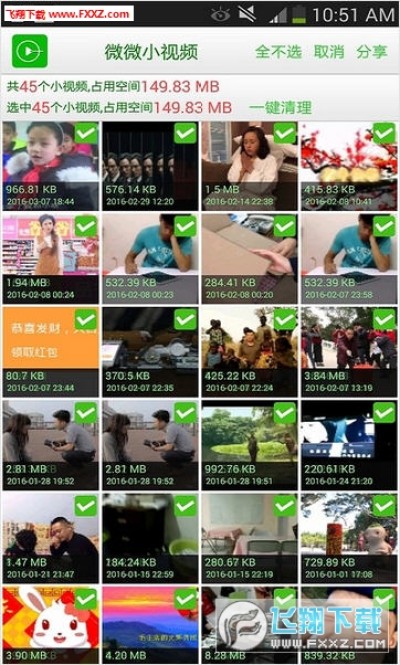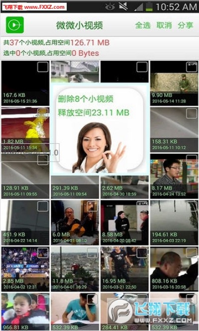 1、一键清理微信小视频,释放你的手机内存。手机不再卡顿。