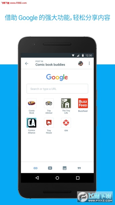 • 分享框中内置了 Google 搜索、Chrome、Google 相册和 YouTube