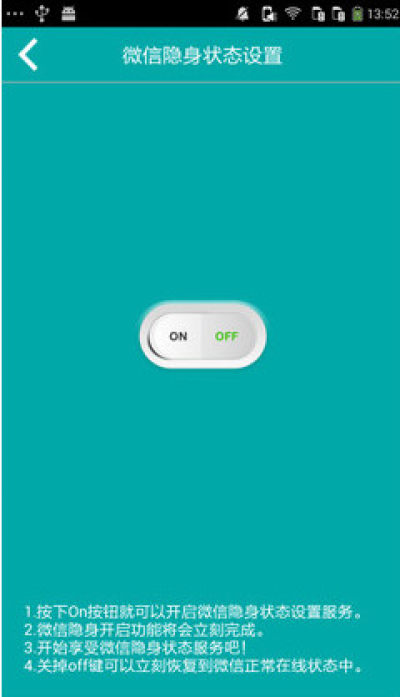 微信隐身设置神器可以让你在下班之后解除烦恼,经常公司的微信消息就发来了,烦死人~!!有了这款微信隐身设置神器一键离线隐身,想在线的时候,还可以设置恢复微信上线时间。