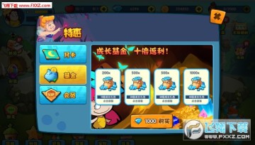 点击基金,花费1000钻石购买基金,玩家每提升10级即可领取一次基金返还。例如升到10级即可领取200钻石,20级领取500钻石,30级领取500钻石。