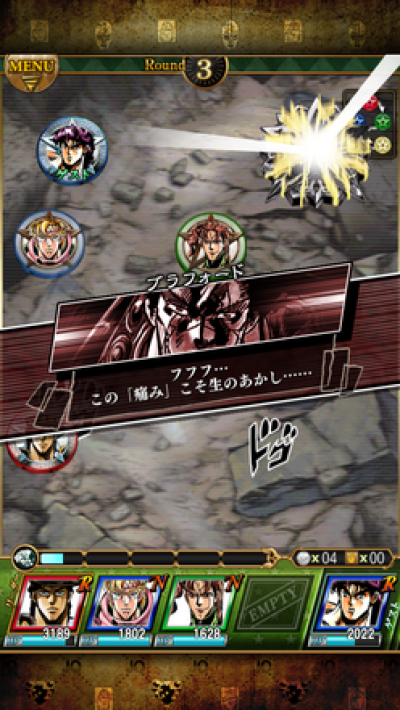 游戏一开始可以从乔纳森(初代乔乔)、空条承太郎(貌似人气最高就是他啦!)和乔瑟夫(二代乔乔,乔纳森的孙子)三位主角中选择一位。大家都知道《JOJO》塑造的人物尤其是主角们无一不是血肉丰满的硬汉(当然也有女硬汉),勇气、正义、智慧和真情并重,所以游戏里再看到这些角色的时候实在是太怀念了,这个画风在动漫界中也是独树一帜,旁人难以模仿,改编成游戏之后更不是那些卖萌游戏所能相比的,光是看着就热血涌动啊,JOJO!