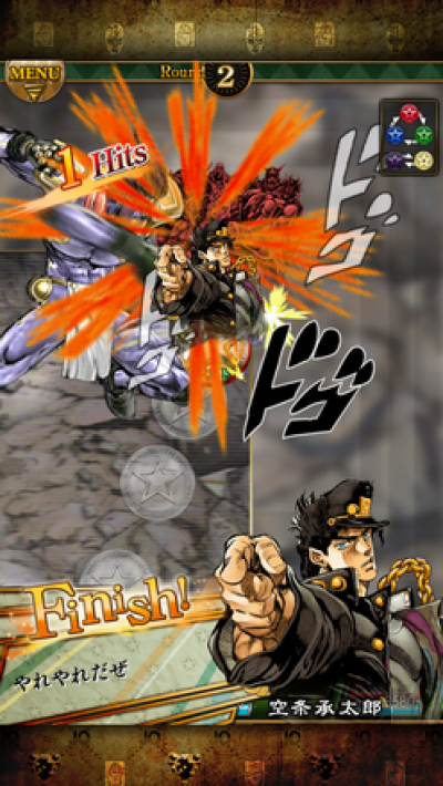 由日本漫画家荒木飞吕彦经典作品《JOJO的奇妙冒险(乔乔冒险奇遇)》改编的 iOS/安卓游戏《JOJO的奇妙冒险 星尘射手(Stardust Shooters)》(ジョジョの奇妙な冒険 スターダストシューターズ)现已正式上架 App Store,游戏开发商为 NamcoBandai(NBGI),采用一贯的日系手游模式,简单爽快的撞球式玩法,加上配合《JOJO》动画里的著名角色和战斗场面,简直热血到令人飞起。