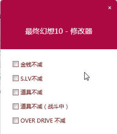 最终幻想10/10-2高清重制版四项修改器是一款适用于最终幻想10重制版的迷你修改器,可以帮玩家实现金钱不减、道具不减等等辅助功能,让游戏更轻松,需要的朋友快来下载试试吧!
