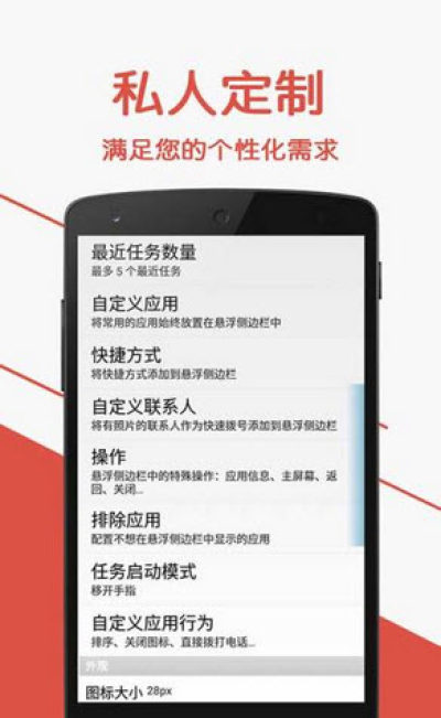 【快速启动程序】通过在菜单里面设置一些常用程序,可以在任何界面启动程序,不用返回桌面,并且有多种菜单可供选择。