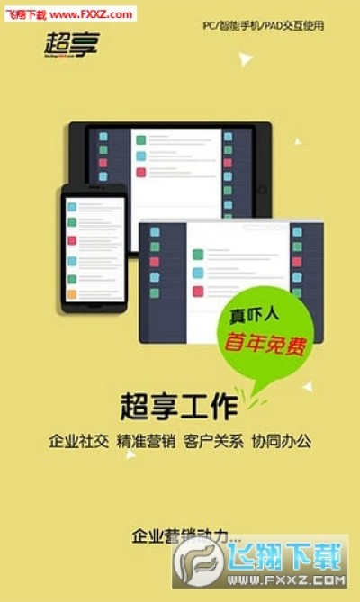 超享工作,专业的移动办公软件,以“打通内外一切工作”为理念,为企业打造一站式移动工作平台,设计简洁明了易操作,PC、手机移动端数据同步,让您畅享移动OA时代随时随地高效办公的新方式。超享对传统办公软件进行了颠覆式创新,面向中小型企业提供社交化沟通协作服务,通过协同办公、企业沟通、精准营销、客户关系管理四大应用场景,连接员工、连接客户、连接应用和数据,对内提升沟通协同效率的同时,打开传统封闭性业务管理的枷锁,实现全价值链连接,助力企业实现管理模式和商业模式的变革,让移动办公变得从未如此简单。