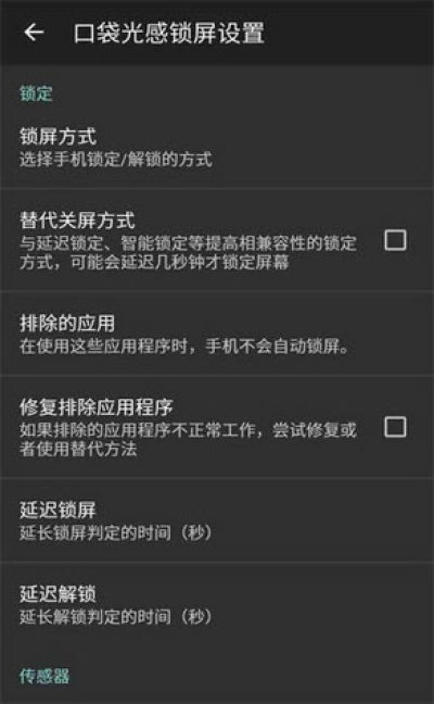 口袋光感锁屏app是一个超好用的手机锁屏工具,你只需盖上手机盖或放入口袋里,在没了光线之后它就会自动锁屏,十分的智能化,感兴趣的朋友可以在这里免费下载体验!