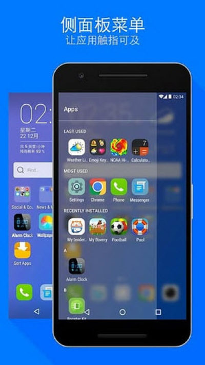 1.智能菜单:启动器可根据类别(如生产力、社交与通信、新闻与杂志等)将您的应用自动归类整理到“智能文件夹”。只需从左下角轻扫即可打开按字母表排序的应用清单,适合习惯于按 A-Z 排序查找应用的用户。您可在菜单顶部找到您最近使用或最常使用的应用。