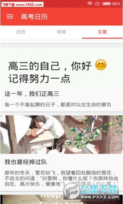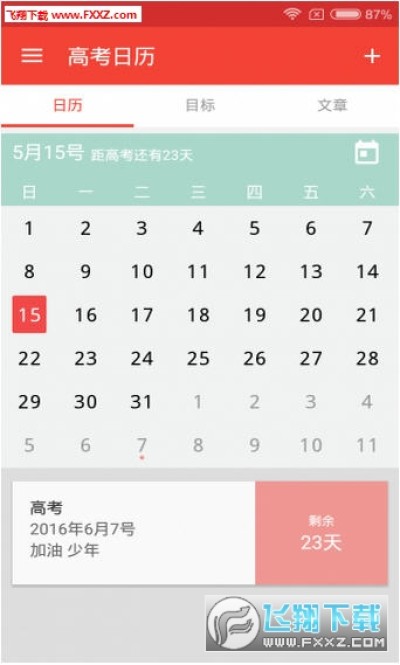 高考日历安卓版是一款高考时间倒计时应用,用户可以通过软件记录高考前的点点滴滴,备战高考,通过高考倒计时,让用户可以了解时间的紧迫,为高考备战吧。很方便的一款应用,快要高考的同学快来下载吧!