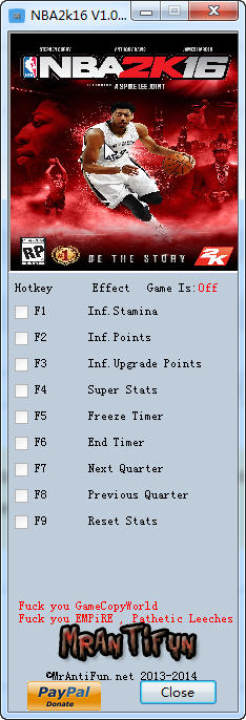 NBA2K16八项修改器是一款针对NBA2K16体育竞技游戏的多功能辅助工具,可以帮助玩家修改游戏数据,轻松实现无限体力、时间暂停、状态重置等等功能,让游戏更加轻松顺畅,需要的朋友快来下载吧!