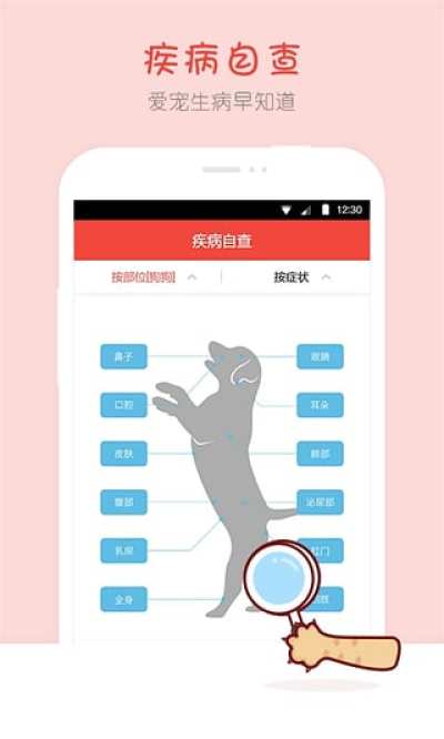 -疾病自查:根据宠物发病位置及症状准确,准确判断宠物可能患上的疾病,给出最专业的解决办法;