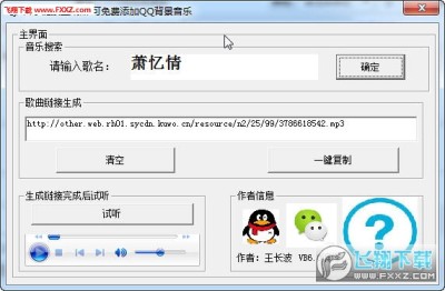 音乐链接生成器是一款绿色小巧的音乐外链生成工具,可以帮助用户快速搜索喜欢的歌手歌曲,快速生成歌曲链接,以便在微博、空间、论坛等平台和其他网友一起分享,此外,还支持试听、QQ背景音乐添加等功能,需要的朋友快来下载试试吧!