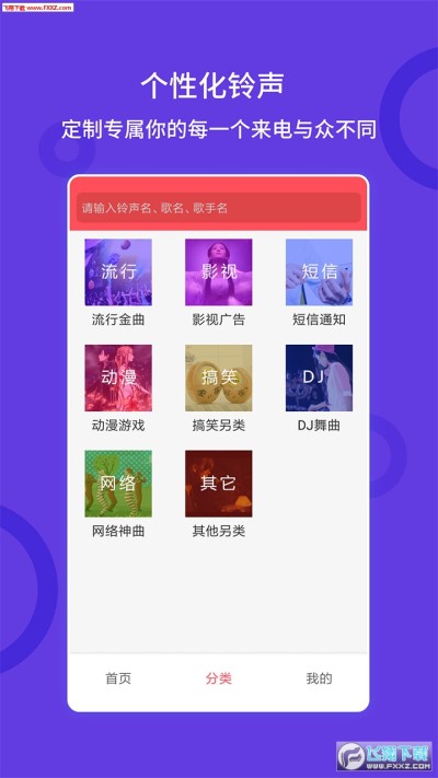 - 超全曲库分类,流行、影视、搞怪、动漫、DJ,喜欢的铃声天天换